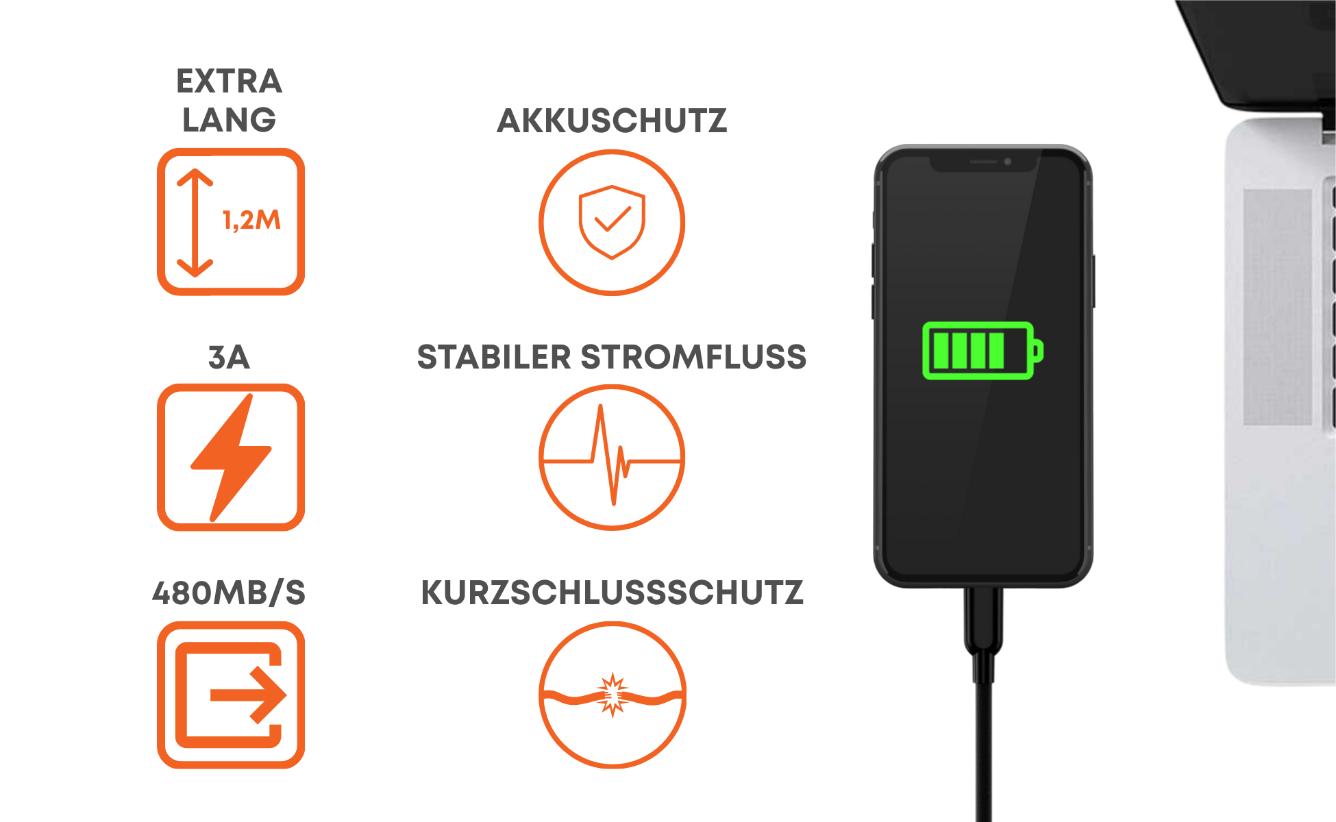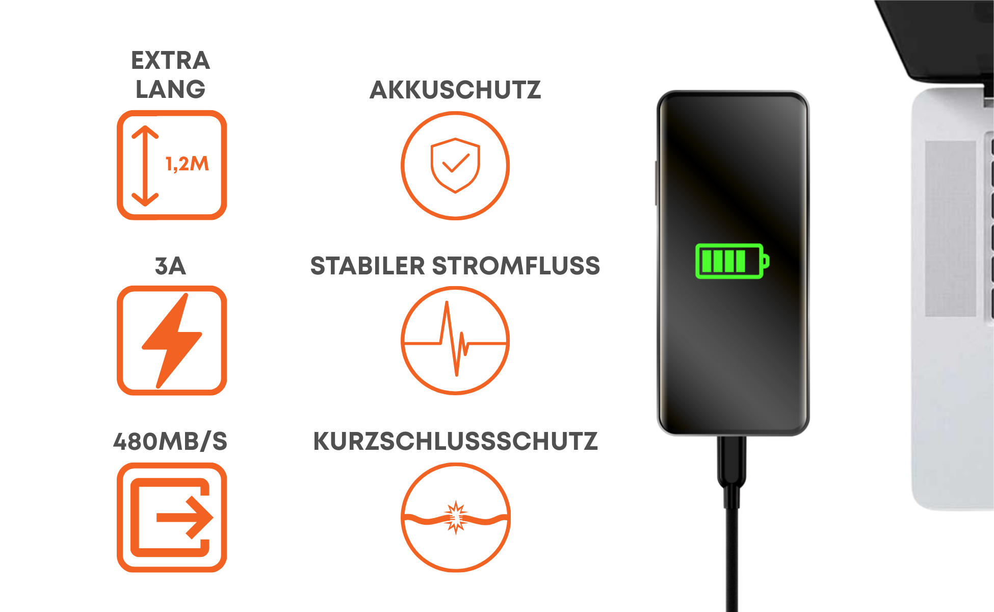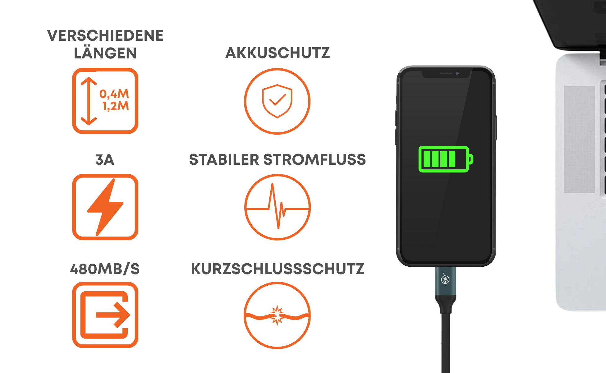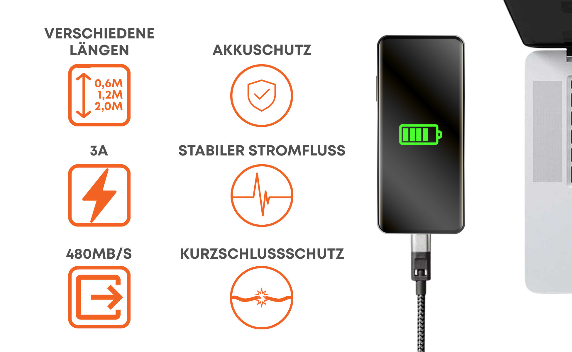 Ein Kabel reicht aus, um Smartphone, Tablet, Laptop und viele weitere Geräte zuverlässig zu laden.