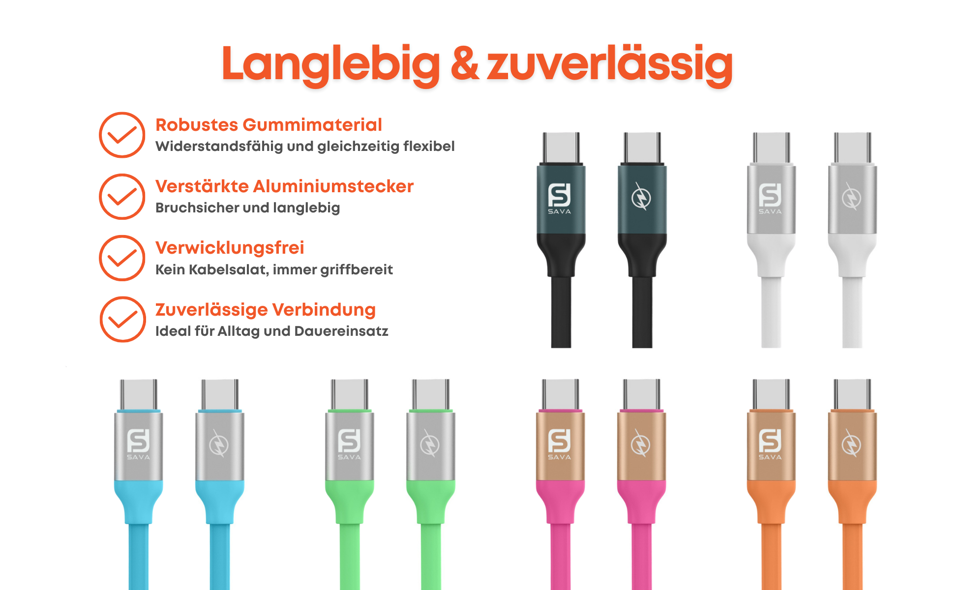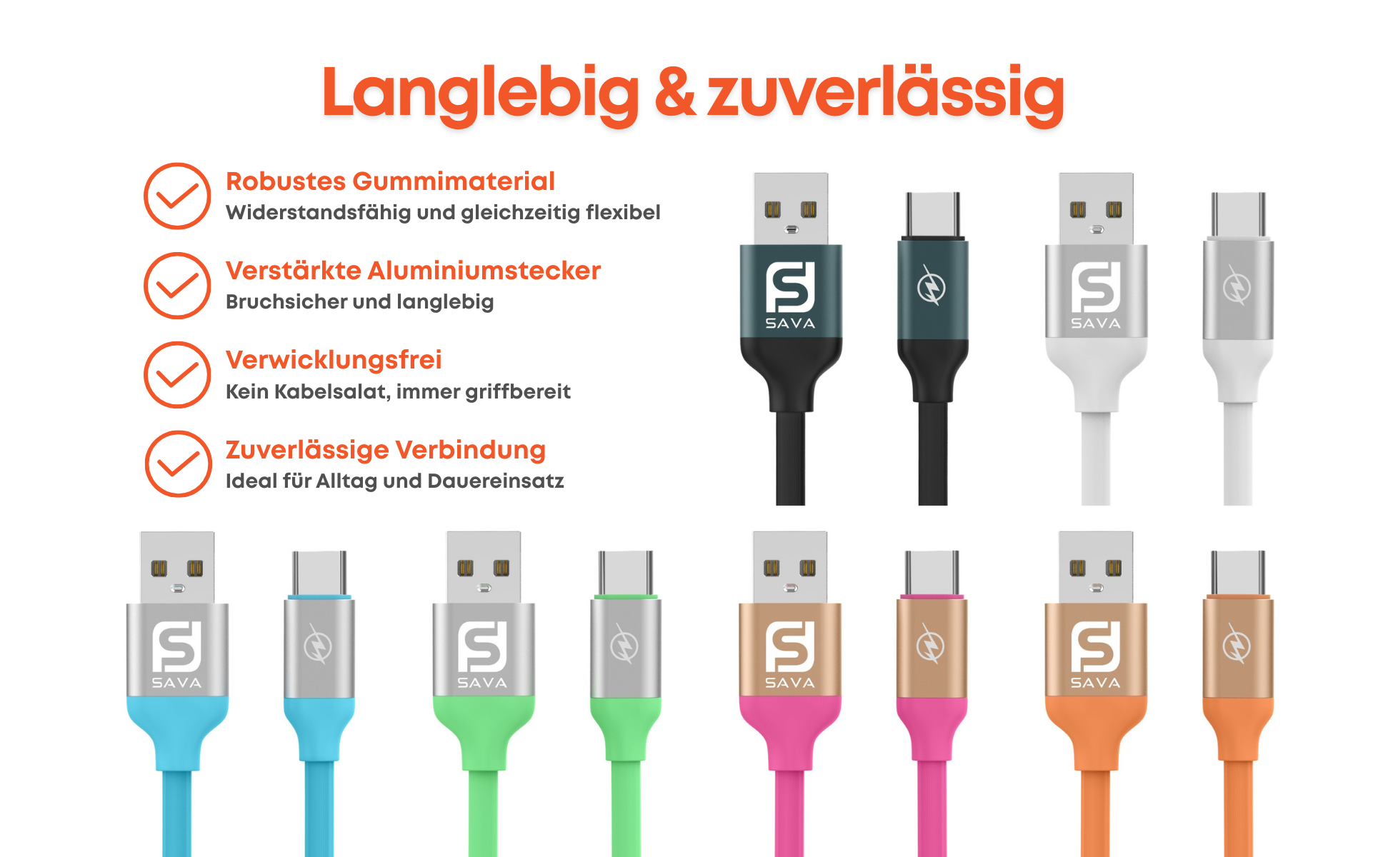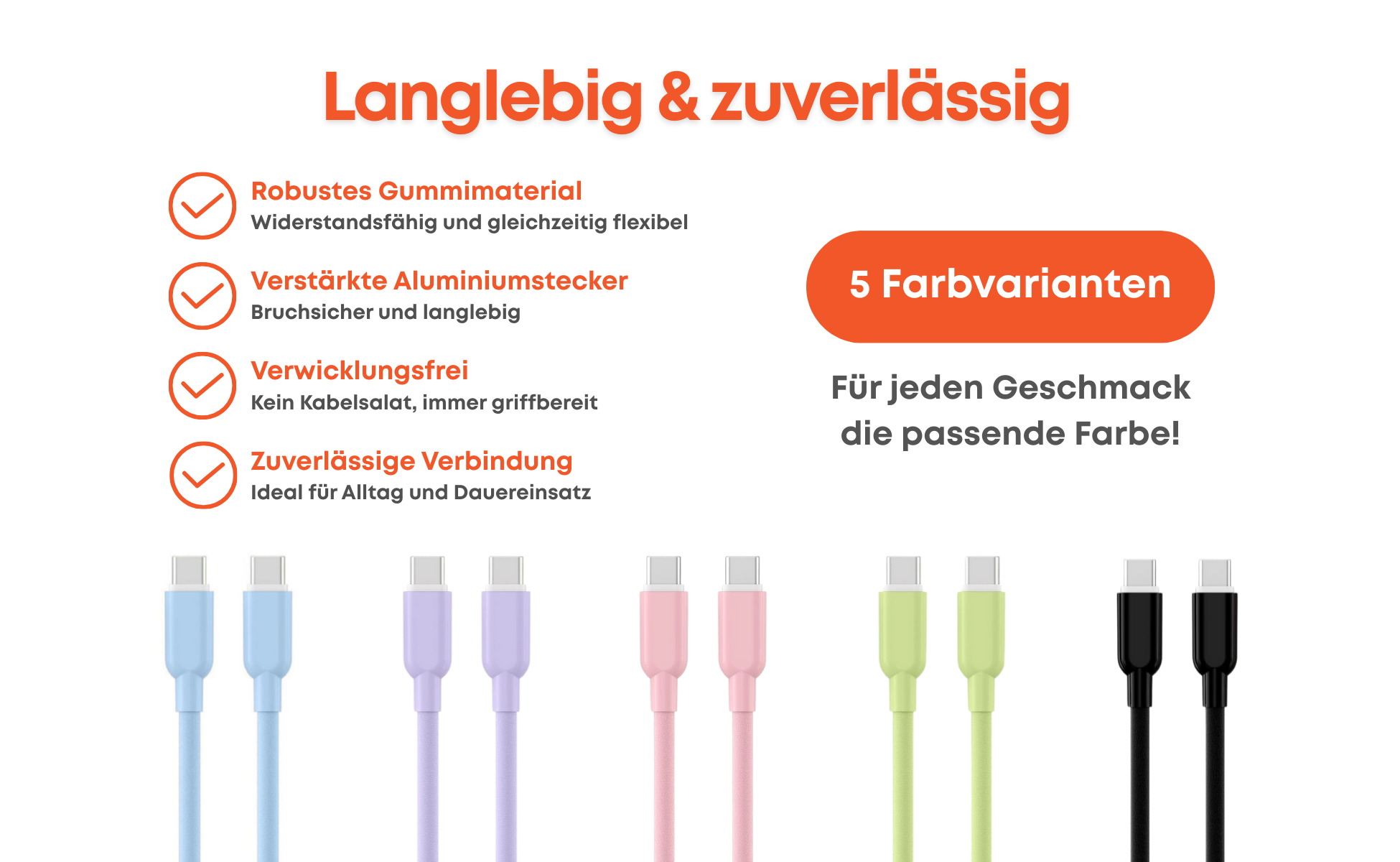 USB A zu USB C Kabel in verschiedenen Farben. Geeignet für Smartphones, Tablets und Laptops.