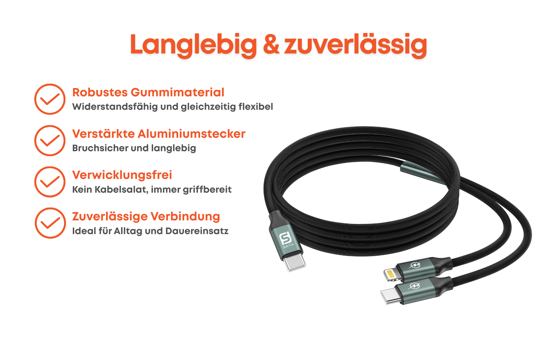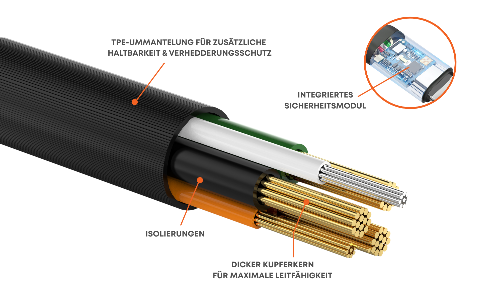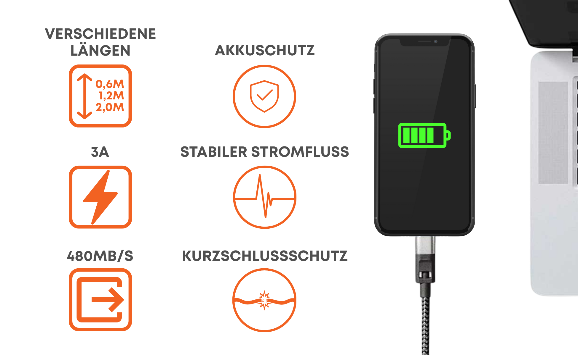 Kabelschutz: verstärktes, geflochtenes Design – robust gegen Abnutzung und Zugbelastung
