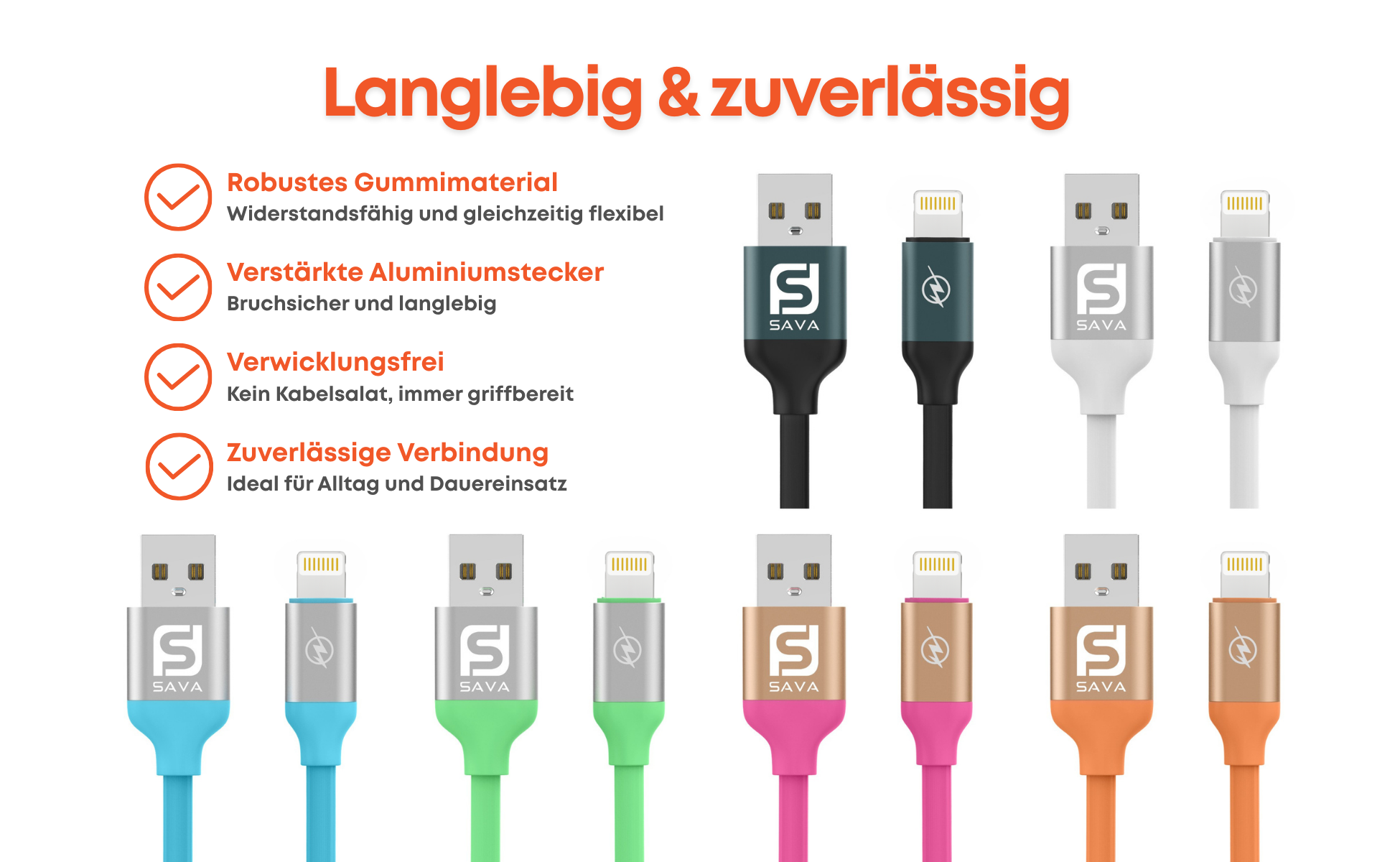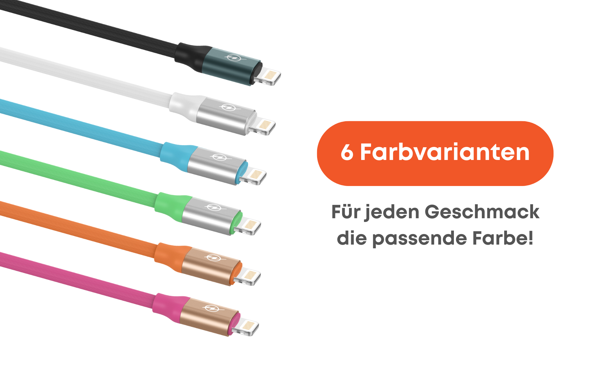 USB A zu Lightning Kabel in verschiedenen Farben. Geeignet für iPhones, iPads und AirPods.