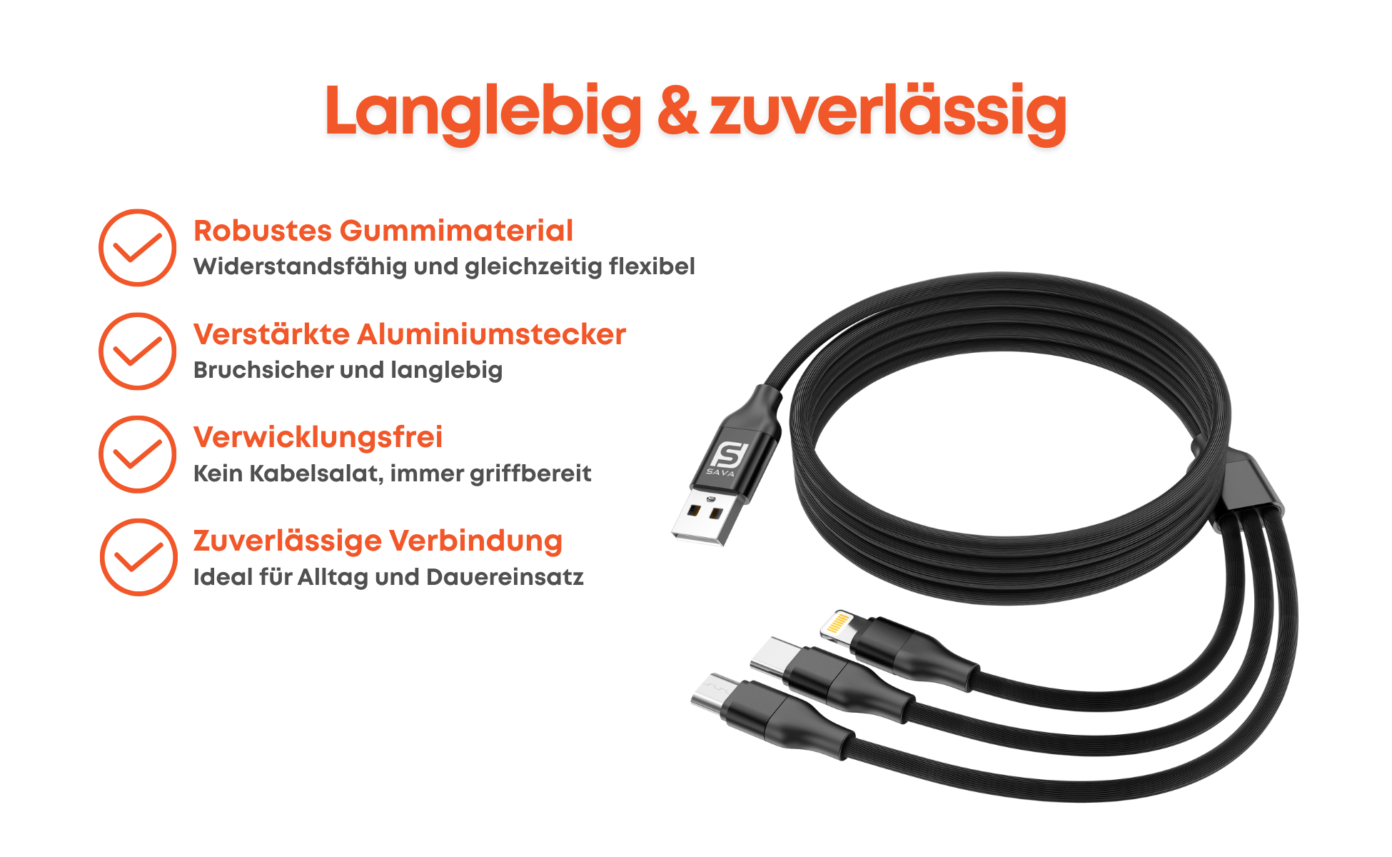 1× USB-A 3-in-1 Kabel