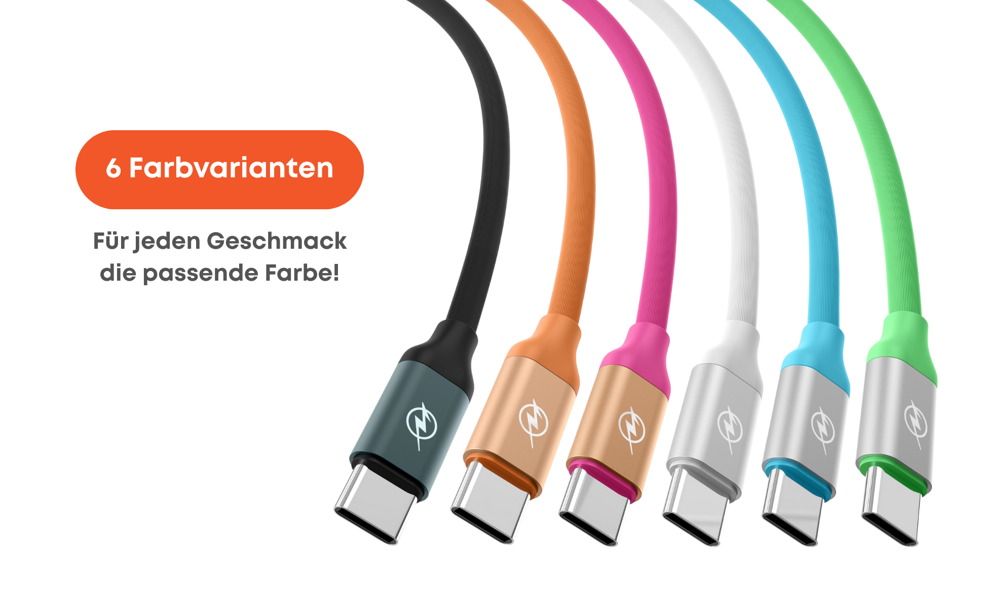 USB C zu USB C Kabel in verschiedenen Farben. Geeignet für Smartphones, Tablets und Laptops.
