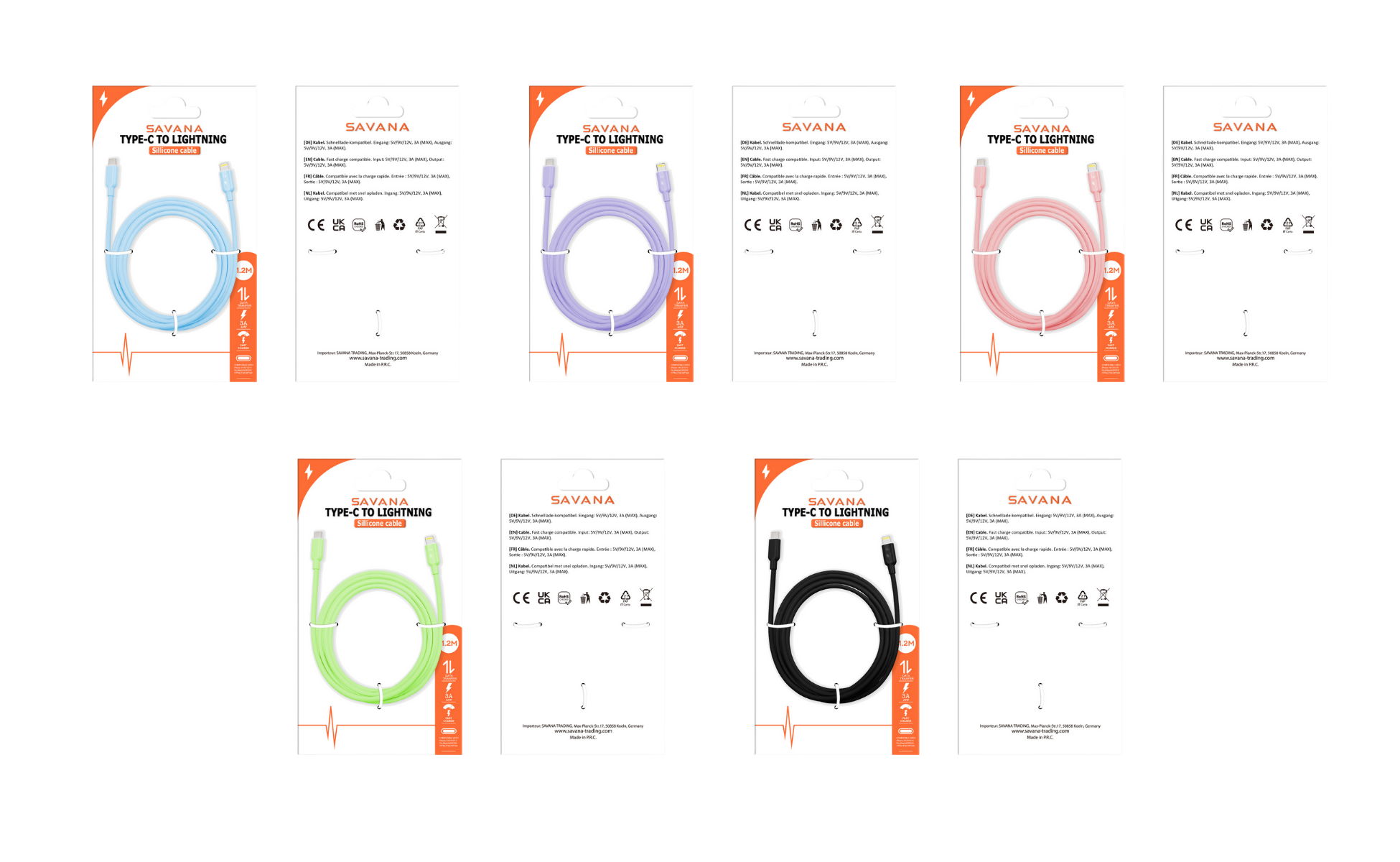 Farben: Schwarz, Weiß, Orange, Grün, Blau, Pink